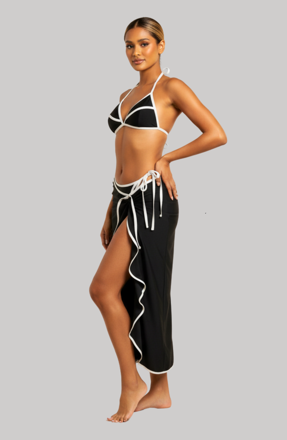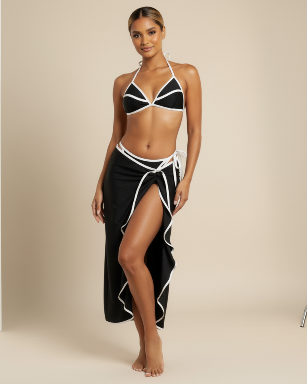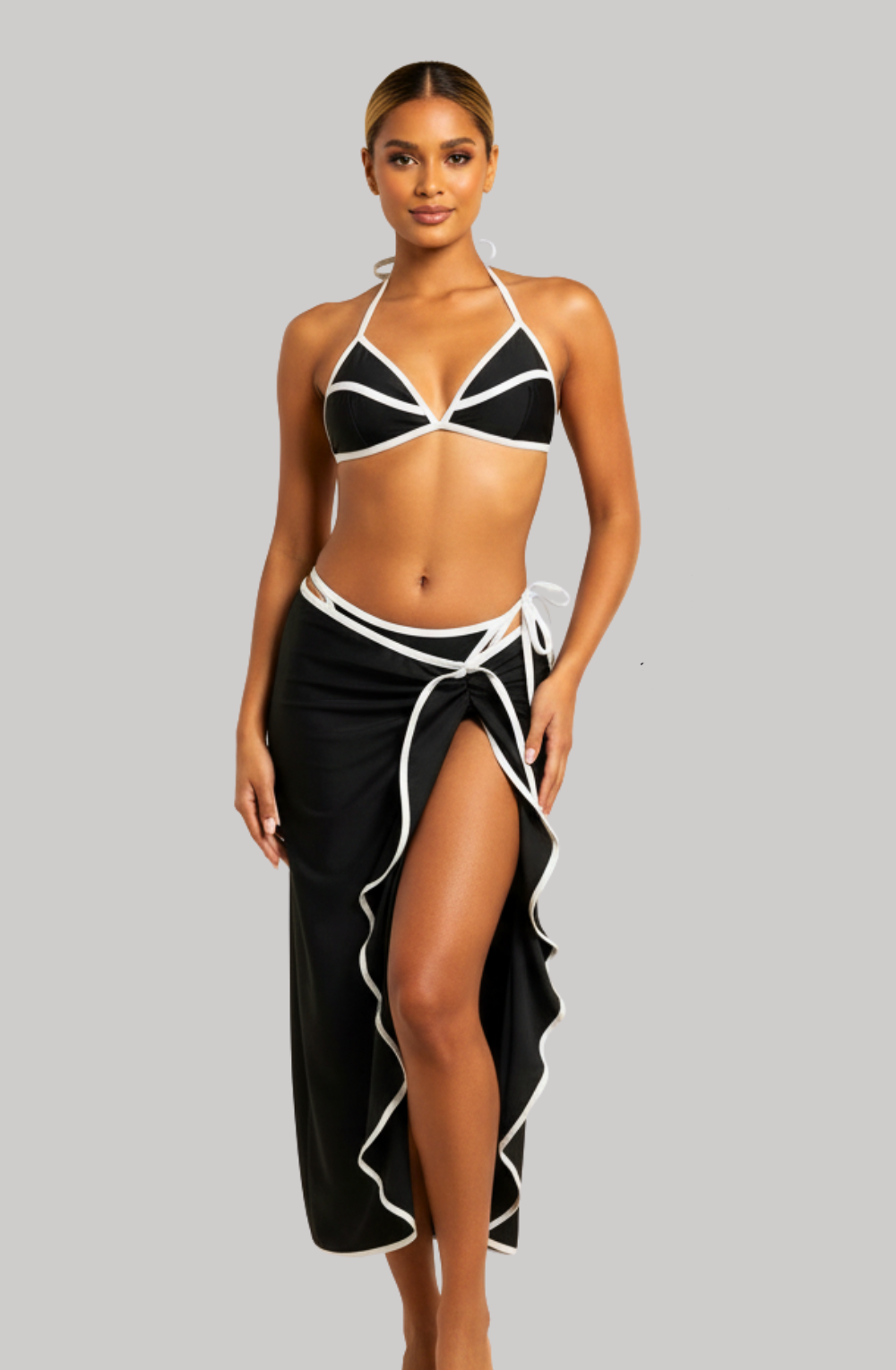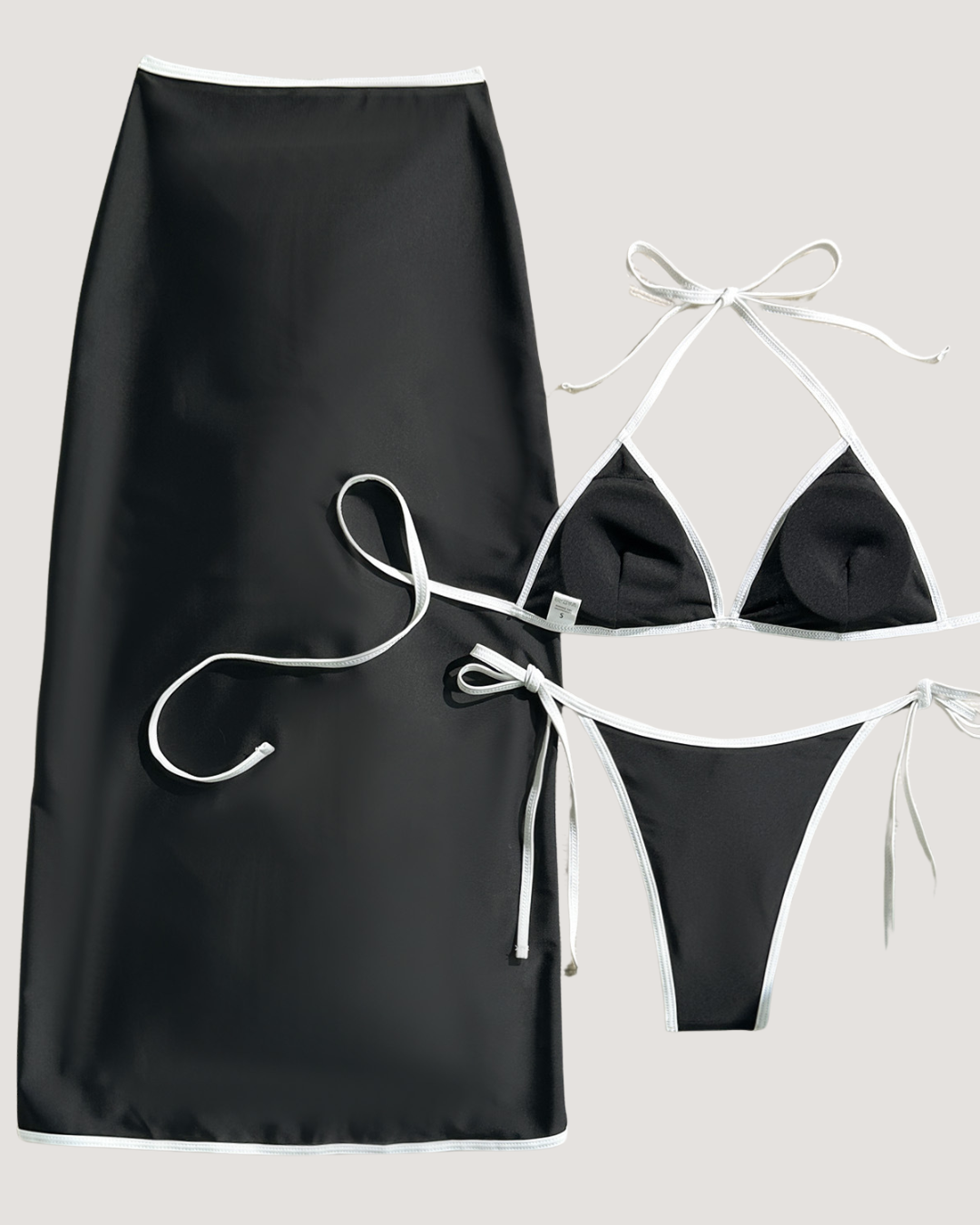 Complete 3-Piece Set: Bikini top, tie-side bottoms, and matching skirt for versatile looks