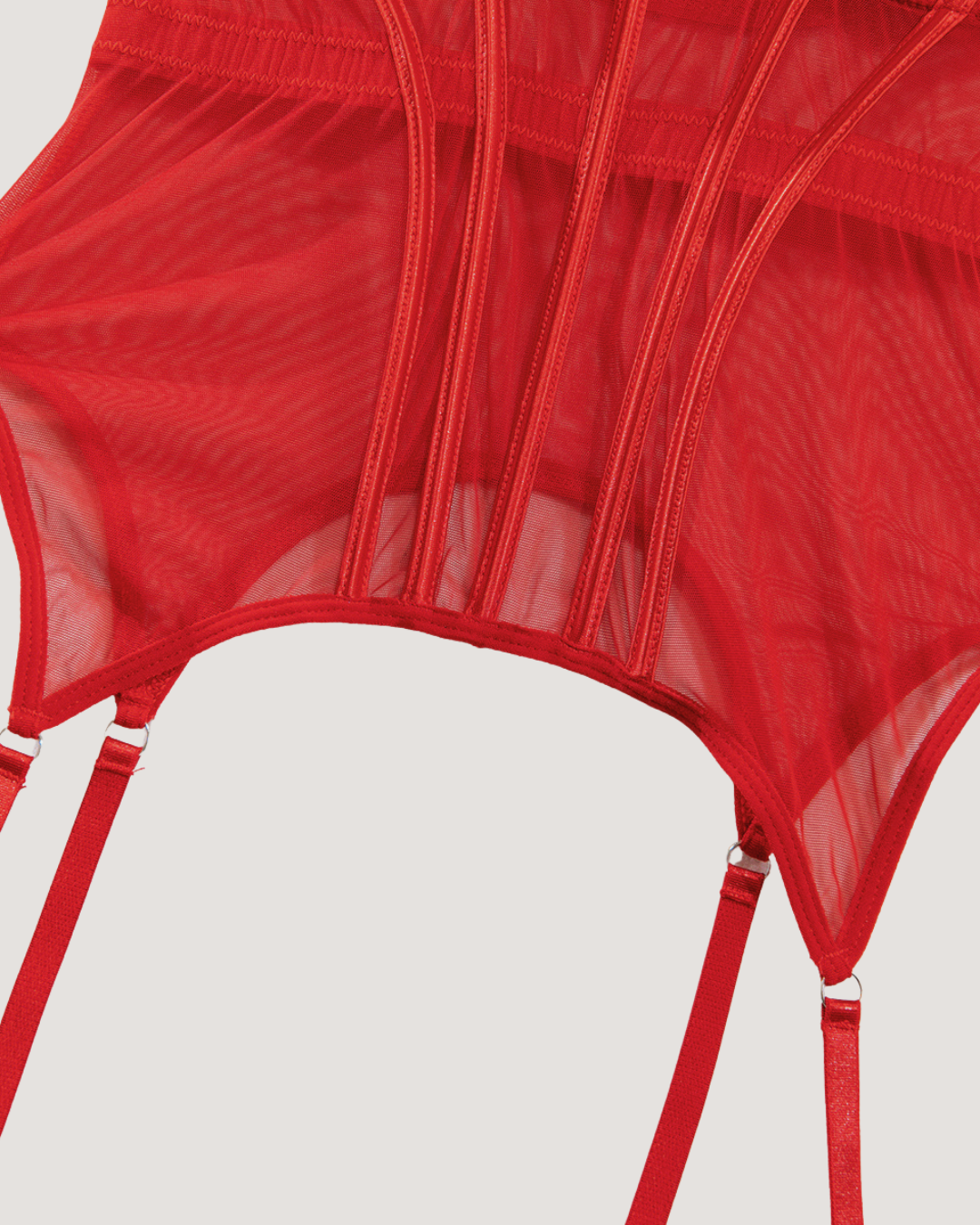 💎 Diamond Dream Design: Striking red lace & mesh with structured boning for a sculpted silhouette