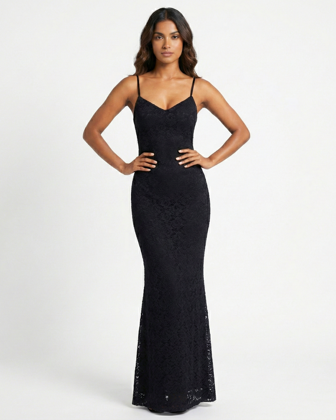 The silhouette features delicate spaghetti straps and a flattering V-neckline, transitioning into a fitted bodice that accentuates your natural curves before flowing gracefully to the floor. Whether you are attending a cocktail party at a high-end hotel, a gala dinner, or a romantic evening out, this black maxi dress ensures you make a memorable entrance.
