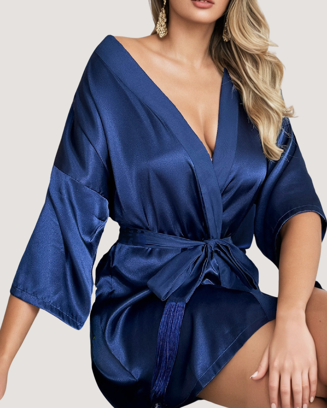 - Mid-Sleeve Design: The elegant mid-sleeve robe provides just the right amount of coverage, making it perfect for lounging or enjoying a relaxing morning cup of coffee.