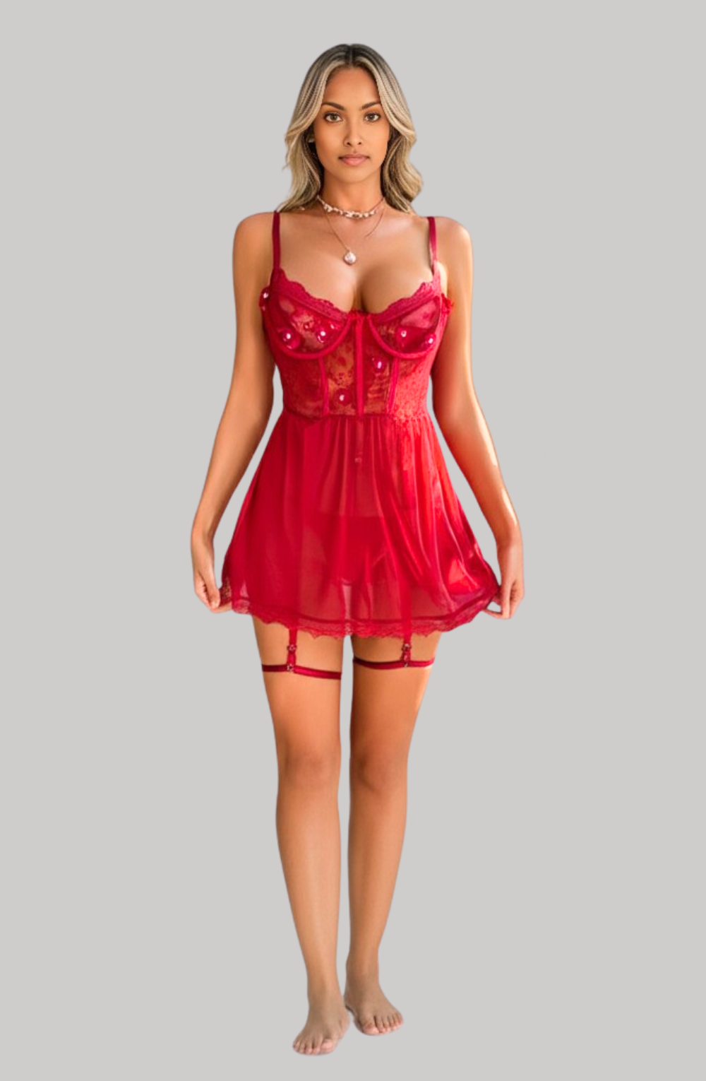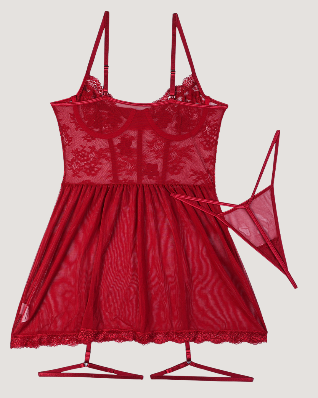 Unleash your inner temptress with the Naughty Seduction Babydoll Dress, a three-piece lace masterpiece designed to ignite passion and confidence.