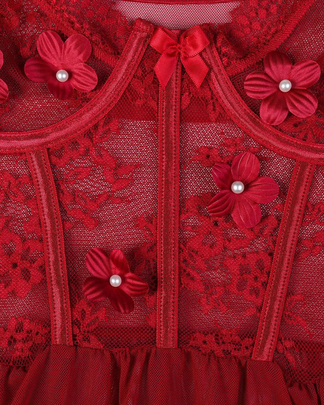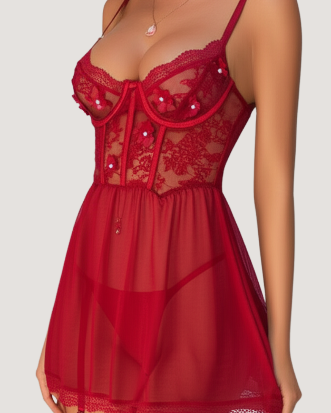 Crafted with delicate nail flower embroidery and see-through mesh, this babydoll dress features a seductive silhouette, underwire support for a flattering lift, and an open-back design that teases with every turn.