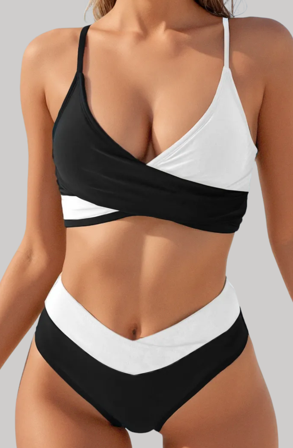 Make waves with the Ocean Envy Pleated Bikini Set, a striking black and white two-piece that defines confidence and allure. Designed with a modern pleated texture, this bikini blends timeless elegance with bold swimwear fashion.