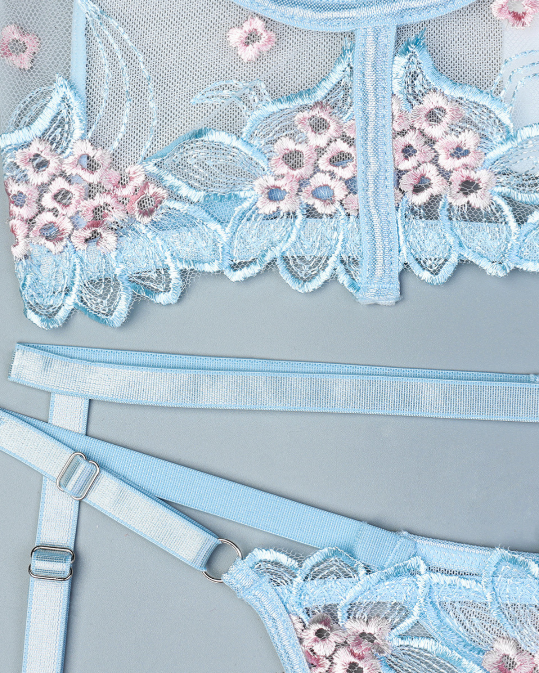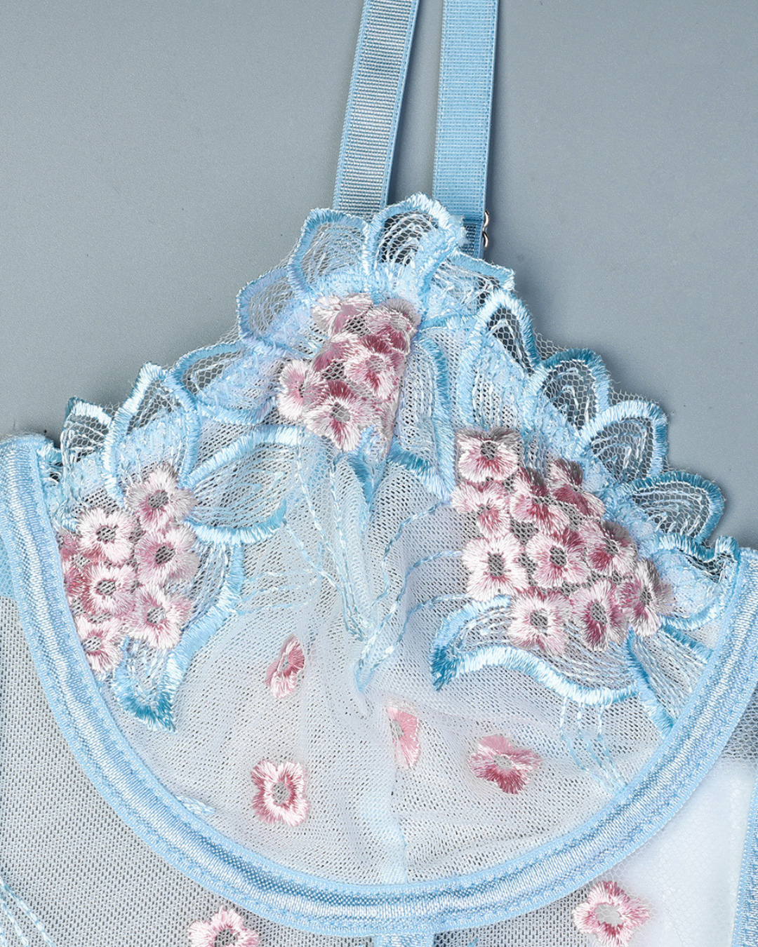 SkyBloom Embroidered Lingerie Set