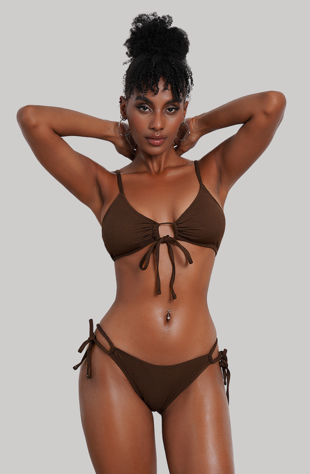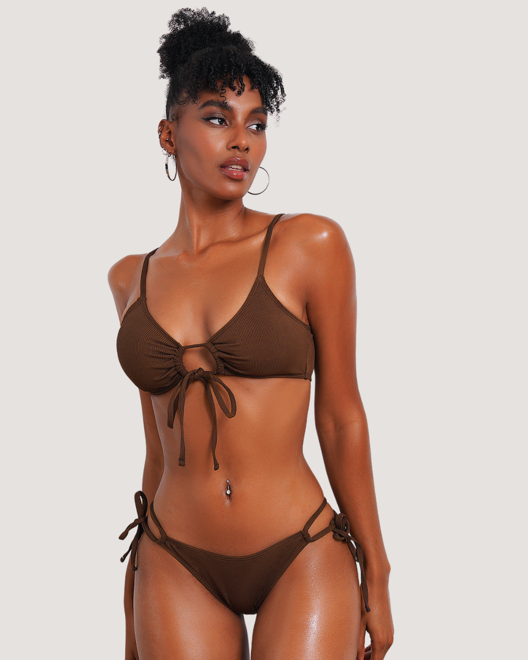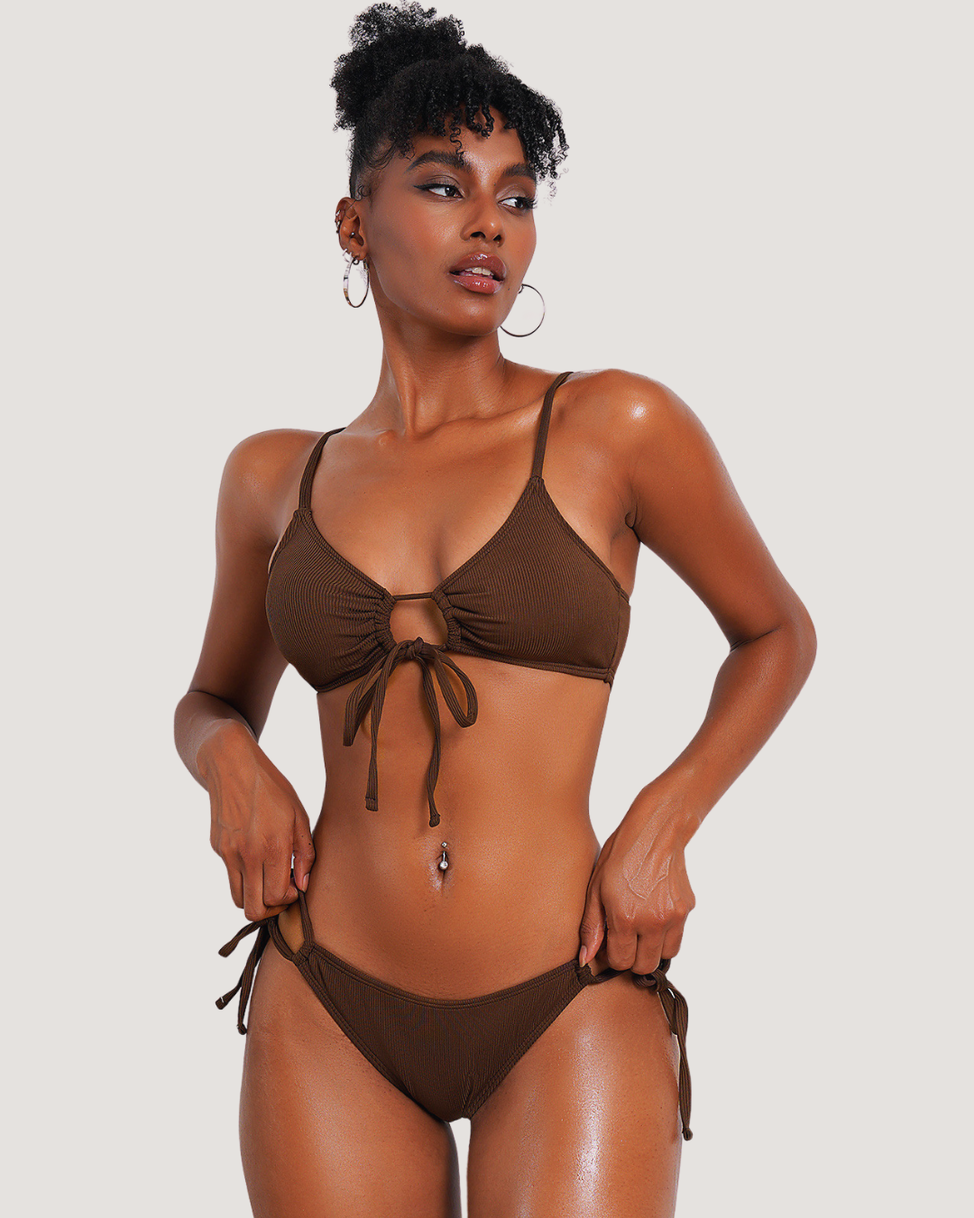The Sunset Slice Two Piece Bikini Set is your go-to for effortless beach glamour. Designed with a flattering split-style silhouette, this solid color bikini hugs your curves in all the right places.
